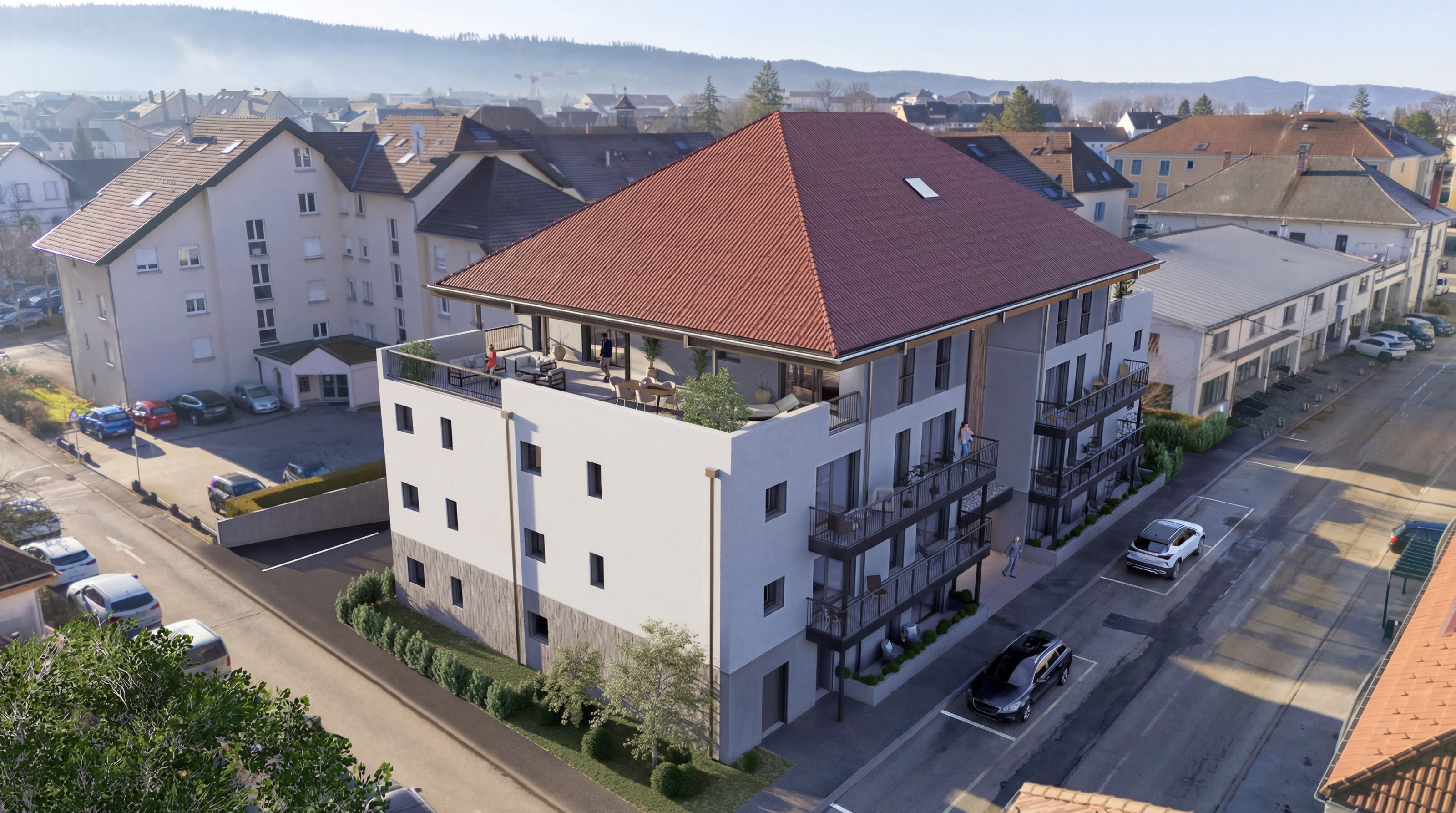 Découvrez la Résidence OVO, un nouveau programme immobilier situé rue Joseph Pillod, à deux pas du Quartier Saint-Pierre, à Pontarlier. Composée de 24 appartements du T1 au T5, dont deux logements d’exception au dernier étage, la résidence propose un cadre de vie citadin, calme et à taille humaine, où tout se fait à pied.